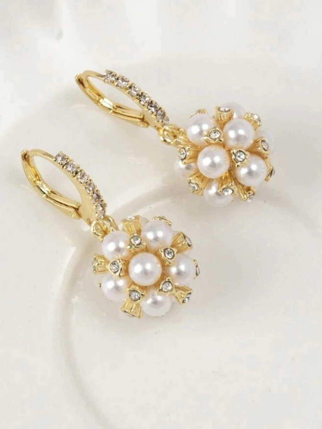 Material: Metal de alta qualidade banhado de ouro e pérolas.