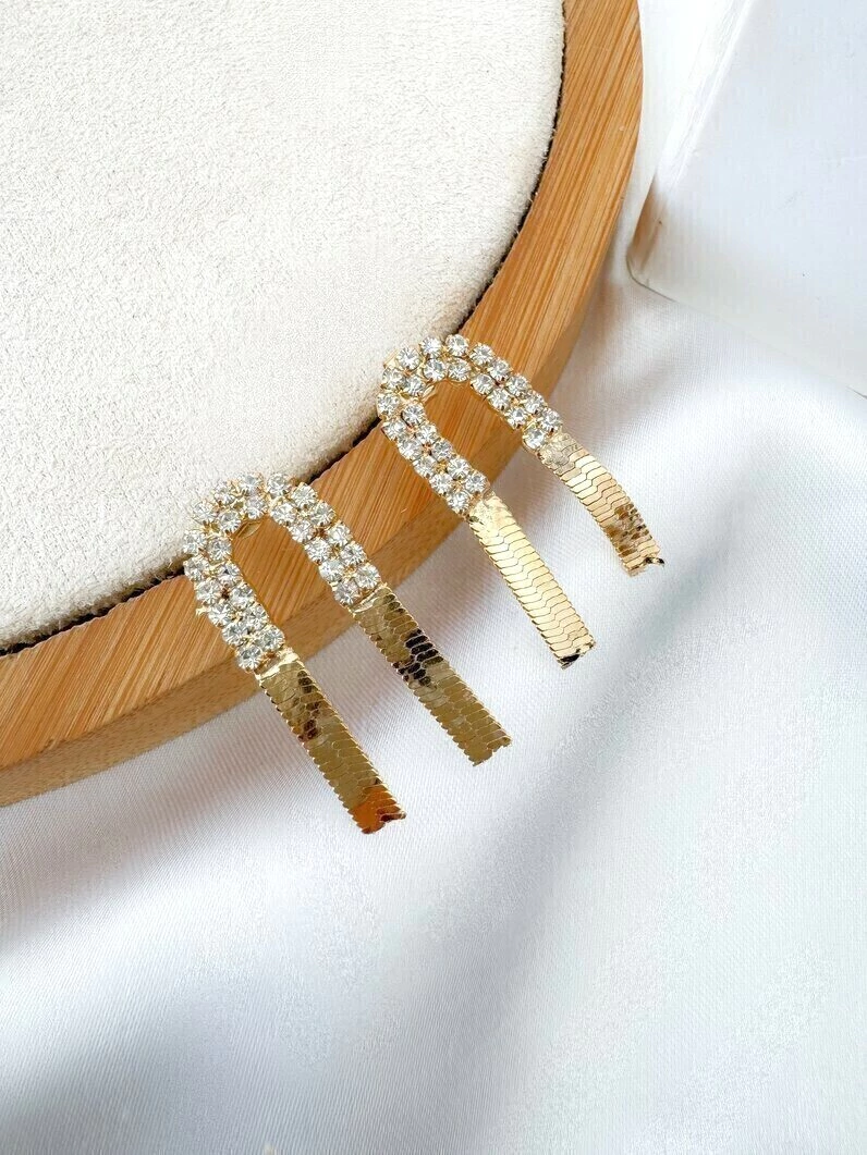 Nosso Brinco Cravejado com Fita Laminada conta com um design elegante moderno e cada detalhe pensado para completar e trazer mais beleza ao estilo de cada mulher.