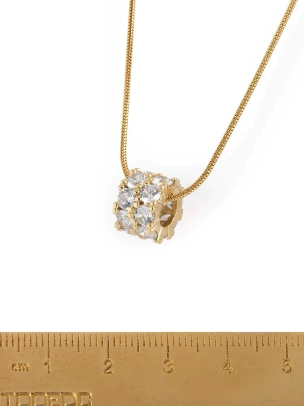 Esse colar é uma semijoia delicada banhado a ouro, com pingente em formato de círculo com pedras de zircônia cravejadas permite trazer mais brilho e elegância ao seu visual.