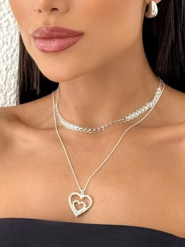 Esses colares são uma semijoia delicada e moderna, possui uma das correntes com escamas e outra corrente com pingente de coração com zircônias cravadas que fazem transbordar elegância e romantismo ao seu estilo. Seja no dia a dia ou em momentos especiais, esta peça será o destaque perfeito para expressar sua autenticidade.