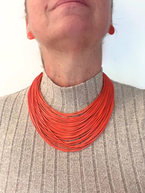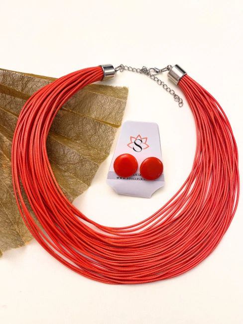 Conjunto Colar e Brincos Fios Laranja