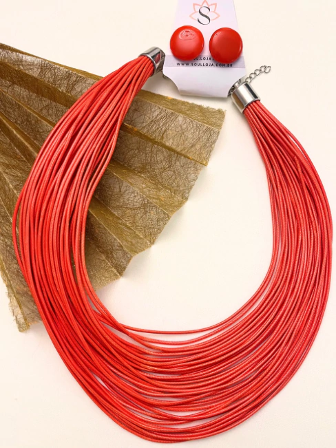 O Conjunto Colar e Brincos da Coleção Lines conta com um design elegante e cores marcantes, o estilo maxi colar permite que seu look tenha personalidade e garante valorizar ainda mais sua beleza.